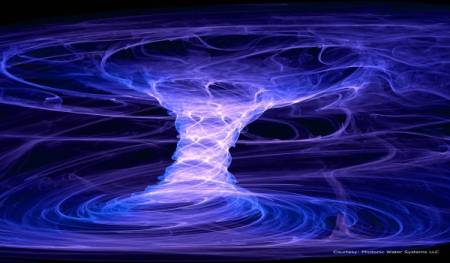point zéro du vortex l'eau se re-structure et s'infuse en bio-photons.